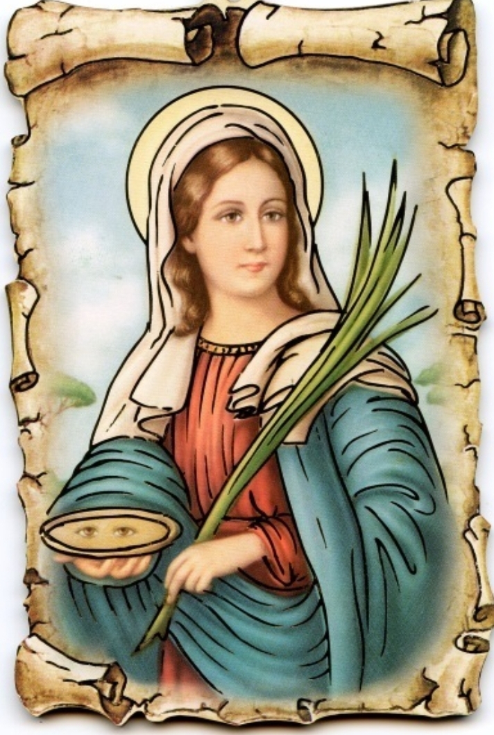 Nata a Siracusa tra il 280 e il 290 d.C. da una ricca famiglia, Santa Lucia è orfana di padre e da giovane viene promessa in matrimonio ad un patrizio. La madre di Lucia è gravemente ammalata, e nonostante le costose cure, non riesce a guarire. Lucia e sua madre Eutichia sono molto credenti e durante un pellegrinaggio al sepolcro di San’Agata, la invocano in preghiera affinchè aiuti la donna a sconfiggere la malattia. Mentre Lucia è assorta ha una visione: Sant’Agata le appare dicendole che può aiutare la madre a guarire e le preannuncia che un giorno sarà la Patrona della città di Siracusa. Al ritorno dal pellegrinaggio Eutichia guarisce, e Lucia decide di dedicare al sua vita al Signore. Comincia così a distribuire le ricchezze che possiede ai poveri e ai bisognosi che incontra. Il suo promesso sposo, indispettito per il rifiuto, la denuncia come appartenente alla religione cristiana. L’imperatore Diocleziano intanto emana i decreti che autorizzano la persecuzione dei cristiani. Santa Lucia viene quindi catturata e processata.